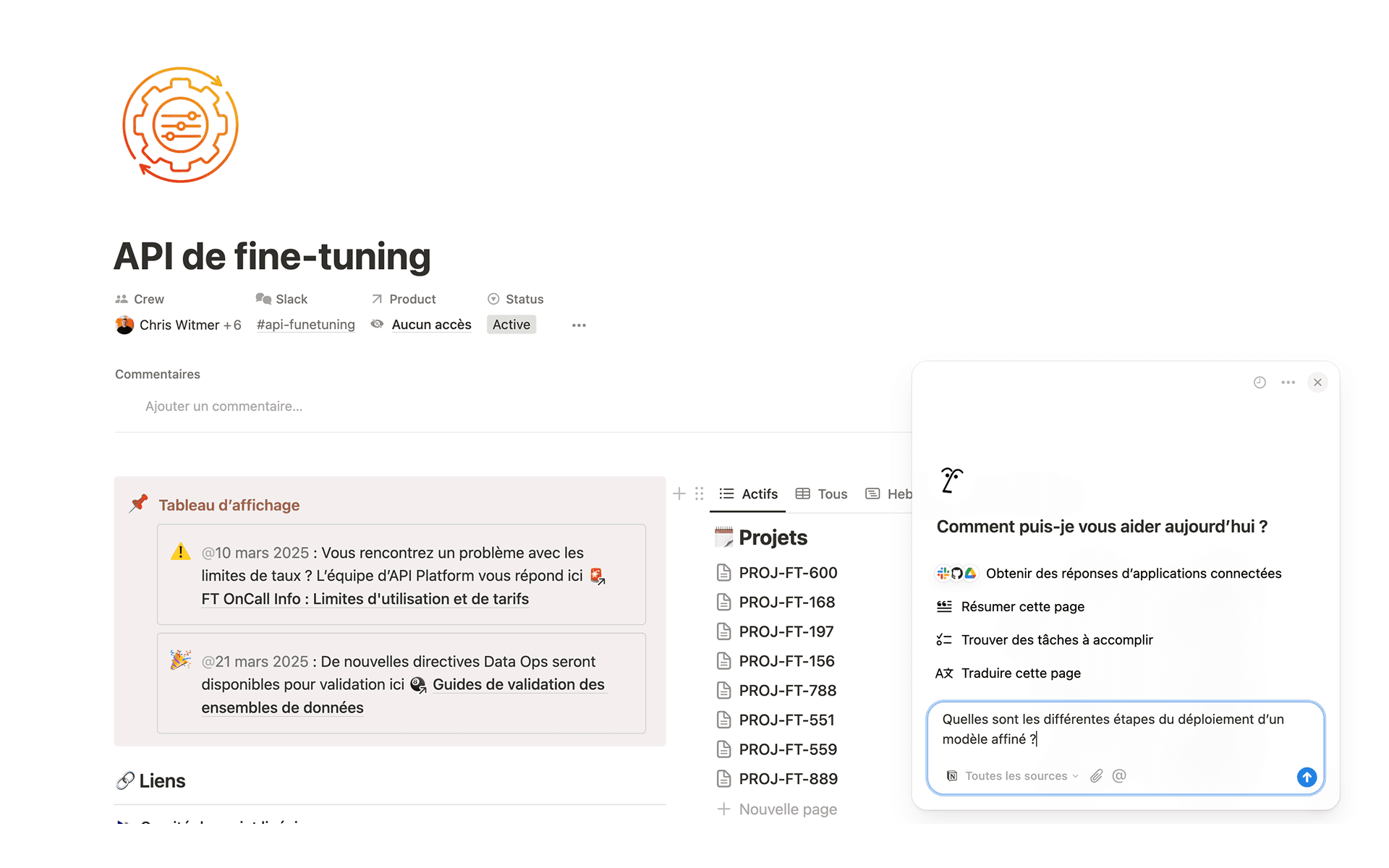 En intégrant notre documentation technique dans Notion, nous permettons que les solutions d’aujourd’hui deviennent les connaissances organisationnelles de demain. Ce qui prenait des heures à résoudre peut désormais être réglé en quelques minutes grâce à l’IA de Notion.