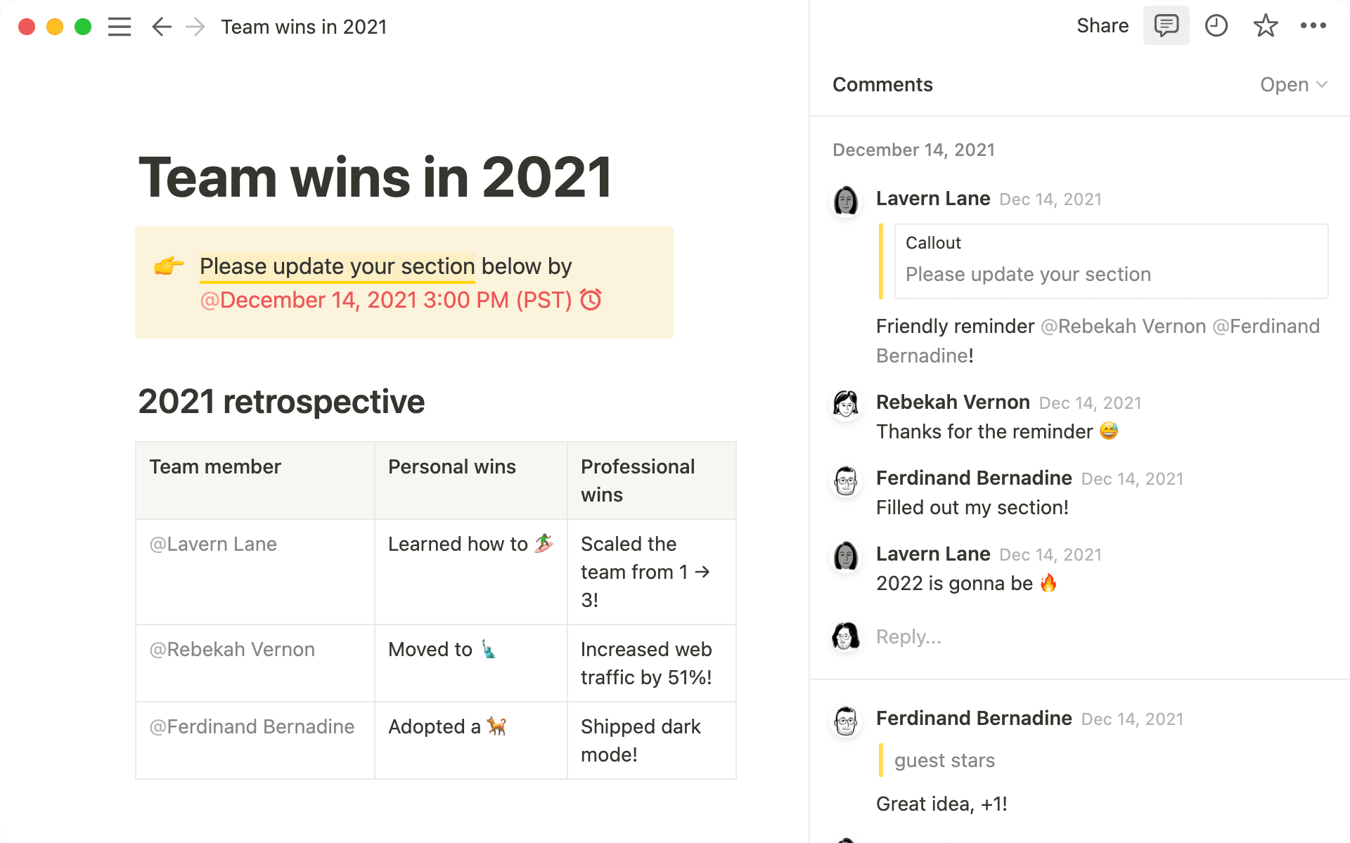 Collaborate more effectively with your team through a completely redesigned comments experience in Notion. Here are the key ways it will improve the way you work together, whether you're giving feedback, suggesting revisions, or planning projects: